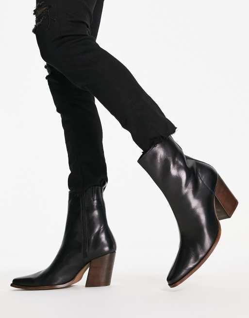 Product Item: Black leather 2025 ankle boots asos